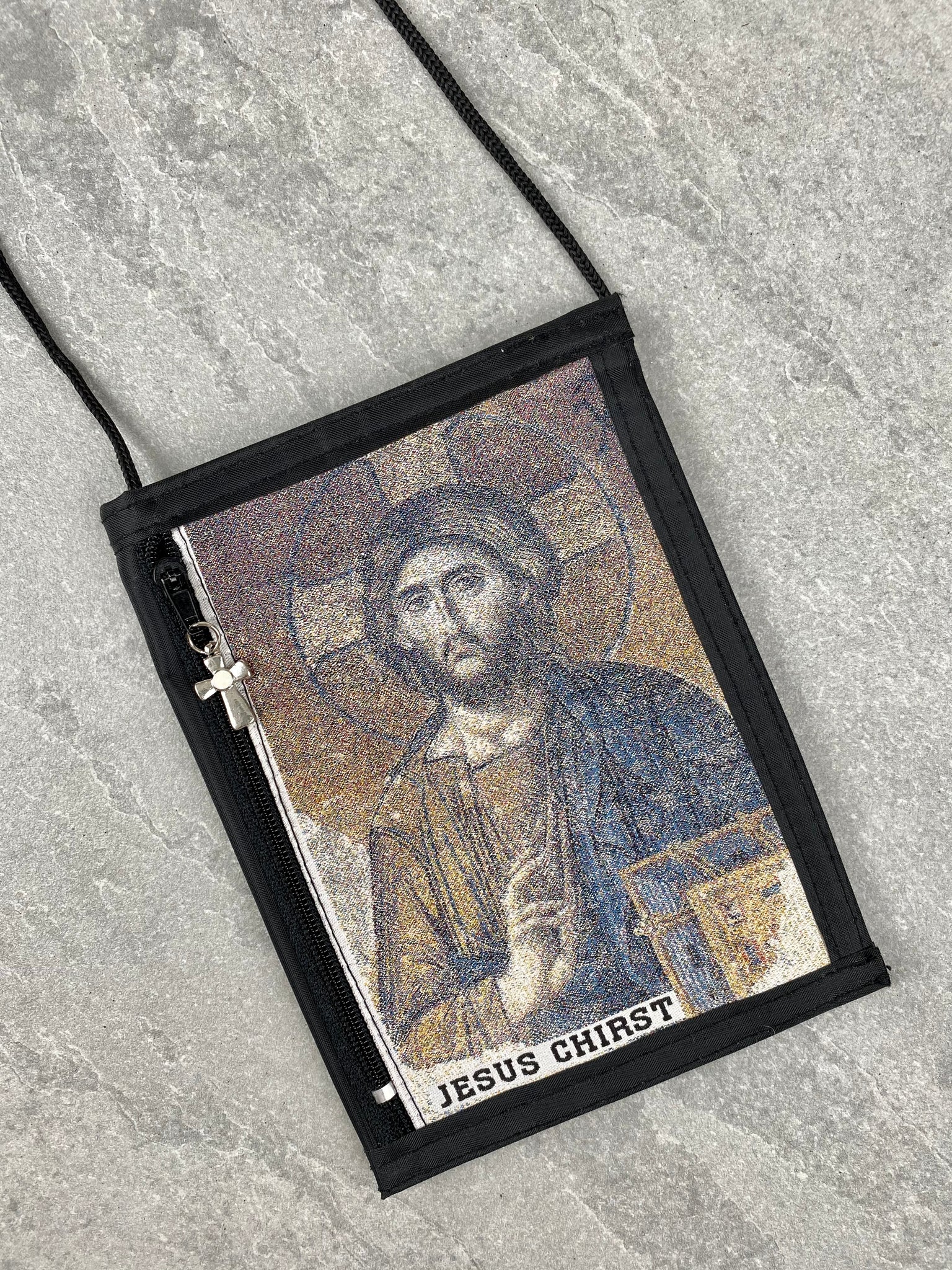 Jesus Print Crossover Wallet with Zippers Hanging Cross